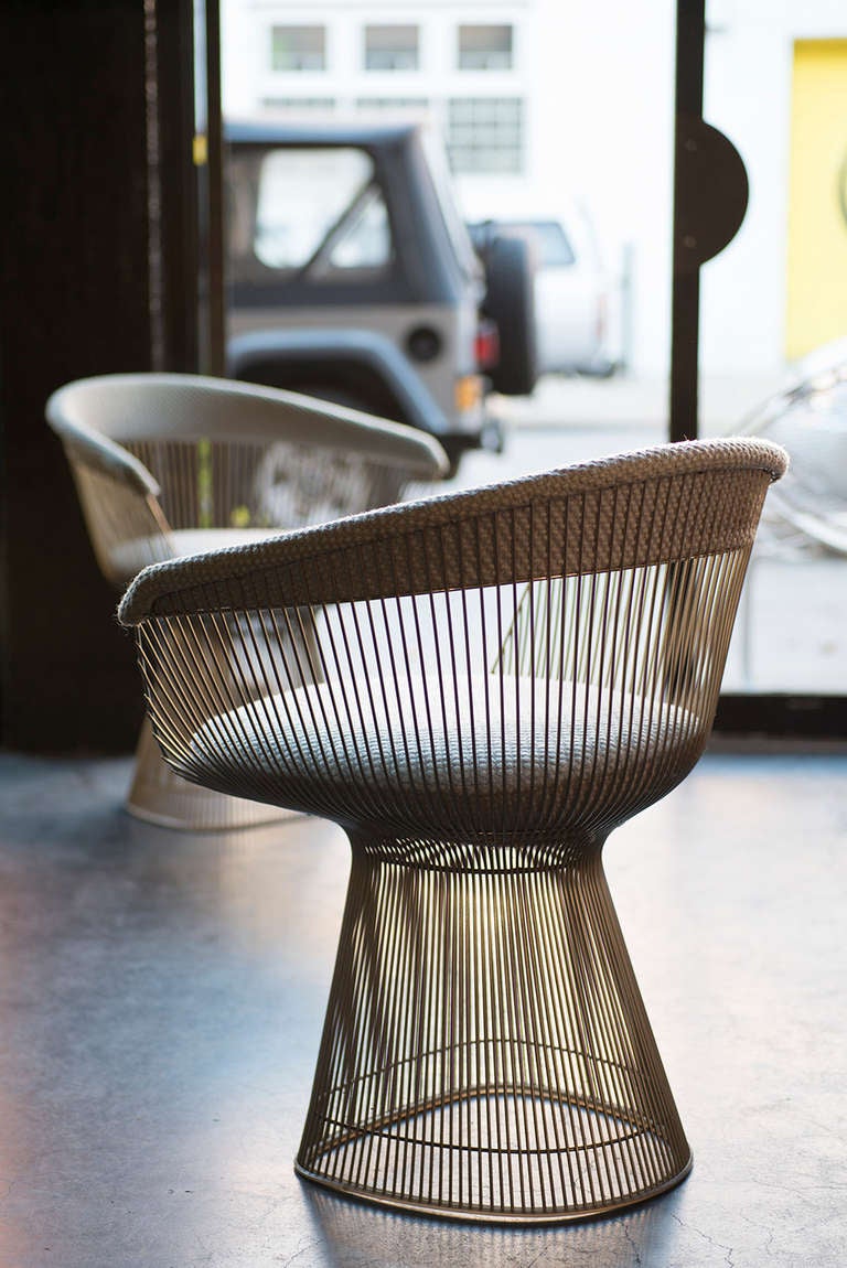 Platner Arm Chair in Gold | Platner armchair, Platner ... from i.pinimg.com Vertical steel wire rods welded to circular horizontal and edge forming rods. The iconic pieces are created by welding hundreds of curved steel rods to circular frames, simultaneously serving as structure and ornament. Warren platner, knoll dining table in red enamel and steel base, custom ordered by the original owner in the late 1970s. Platner side chair designed by warren platner, 1966. Both elegant and whimsical, the stainless steel wire base with gold finish was designed to resemble a shiny sheaf of wheat. The wire constructed base and cashmere wool cushions coexist in perfect balance bringing you a modern chair that will surely elevate the style of your home. Warren platner warren platner sculptural curved wire dining chairs for knoll 1960s modernism h 29 in w 28 in d 22 in $ 11,500. 5 out of 5 stars.
